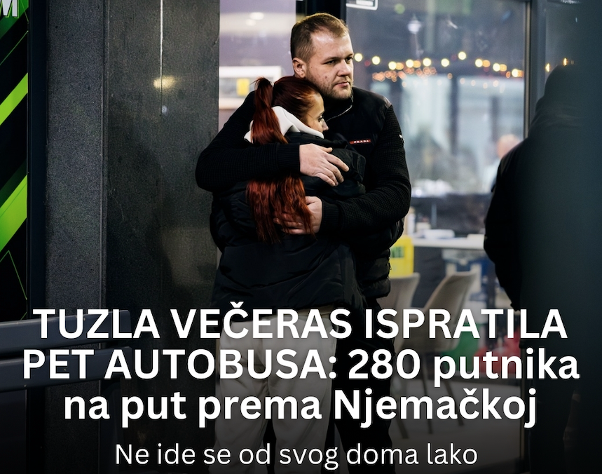 Ne ide se od svog doma lako Večeras je tuzlanska autobuska stanica ponovo postala mjesto rastanaka, suza i tihe nade. Pet autobusa, puna 280 putnika, krenula su prema Njemačkoj –